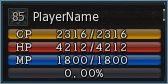 depleted before damage will affect the player's hit points. The CP gauge is found both on your Character Status page (Alt+T), as well as your Character Status window (upper left corner of the game screen and pictured right).