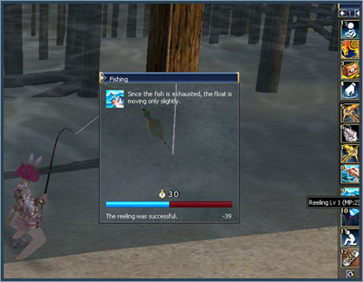 The fishing skills Pumping and Reeling determine fishing success. These skills can also be mastered by paying adena to the Fisherman’s Guild Members. Use the Reeling skill while the fish struggles and resists, and the Pumping skill while the fish is exhausted.